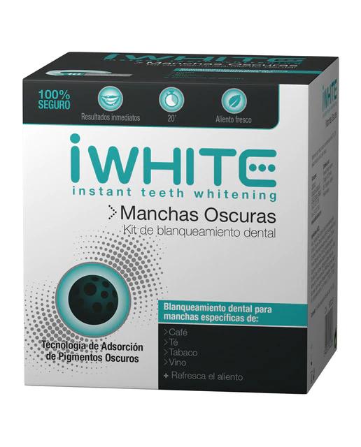 La fórmula del Kit Blanqueamiento Dental Manchas Oscuras iWhite está especialmente diseñada para eliminar las manchas de café, té, tabaco y vino. Además, previene la aparición de nuevas manchas. Este producto contiene PAP, lo que asegura el máximo blanqueamiento y también refresca el aliento.